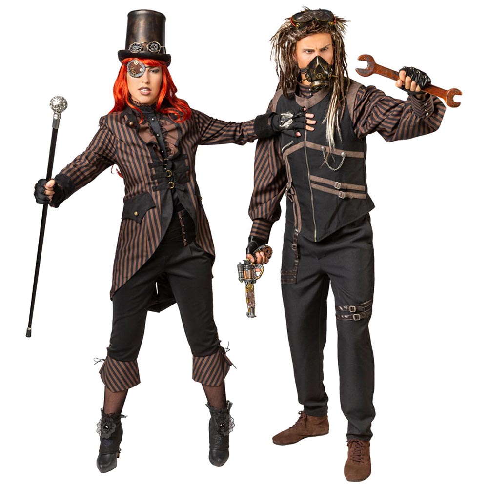 Steampunk-Hemd für Männer, braun mit Streifen. Mäntel, Hosen, Hüte und weitere Accessoires findest du auch bei uns im Sortiment.