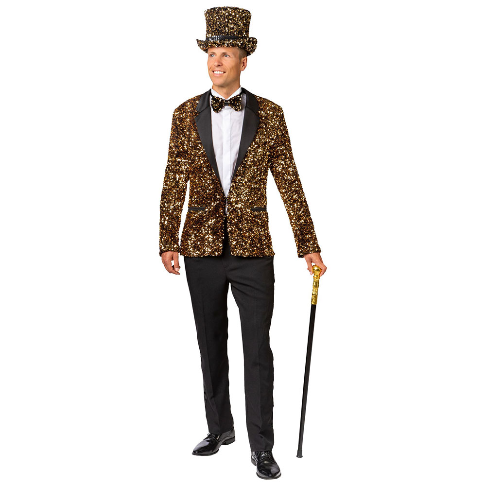 Diese Paillettenjacke ist perfekt für deinen glamourösen Auftritt. Wir haben passend dazu eine grosse Auswahl von Paillettenhüte, Fliegen und Krawatten.