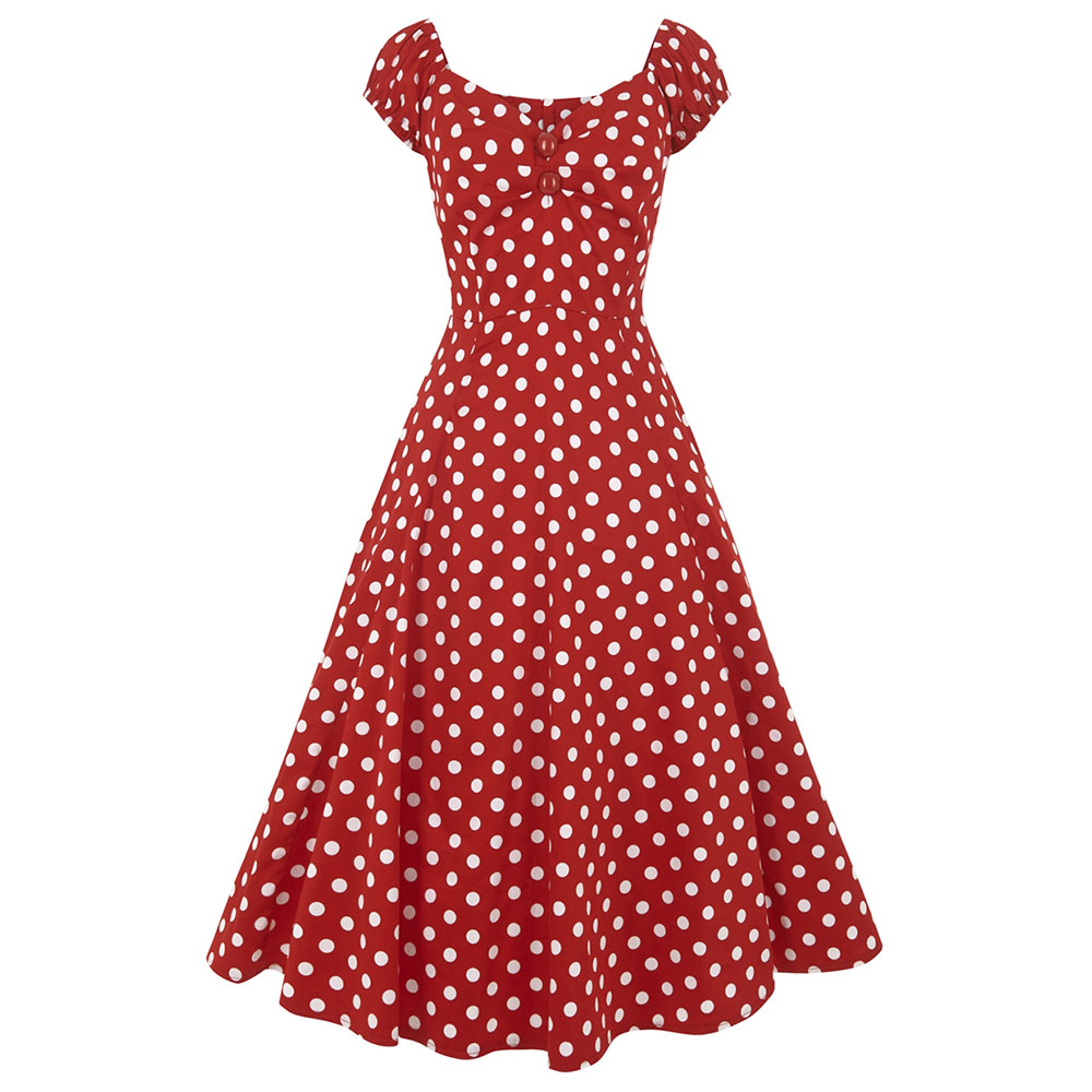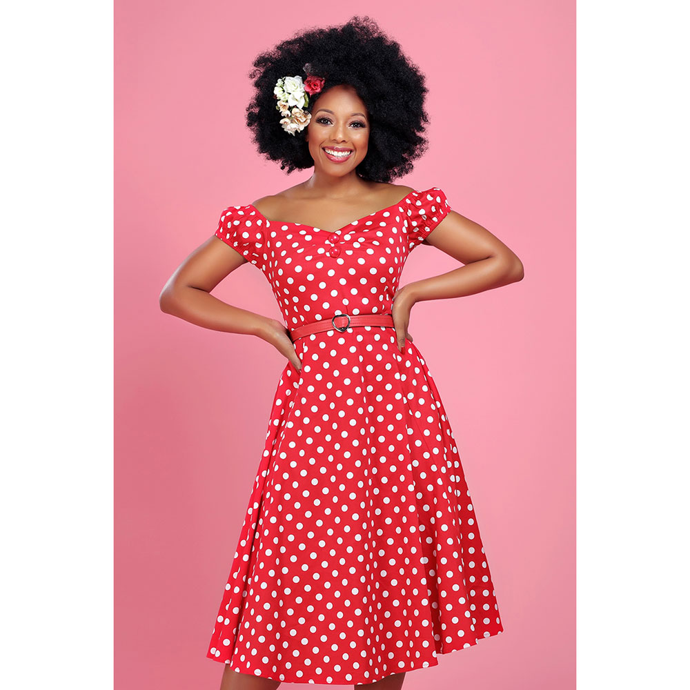 Damenkleid 50er, Dolores Doll, rot/weiss