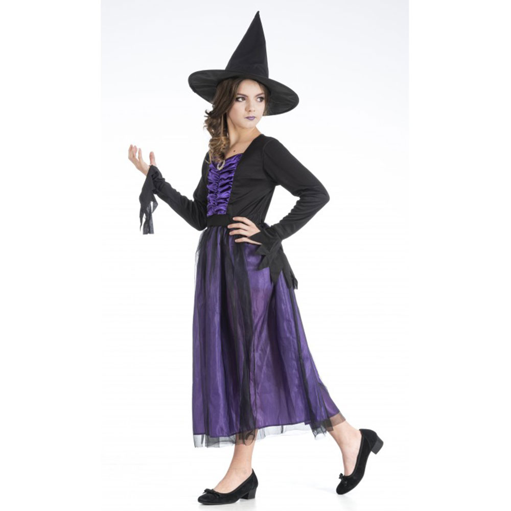 Hexenkleid schwarz/violett. Für den sicheren Flug findest du bei uns auch Hexenbesen.