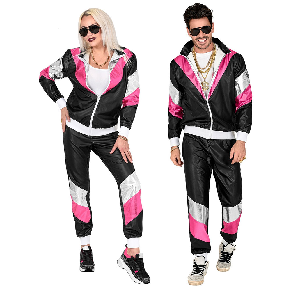 80er/90er Jahre Retro/Vintage-Trainingsanzug für Frauen und Männer. Passende Schweissbänder, Strickmützen und Goldketten haben wir auch im Sortiment.