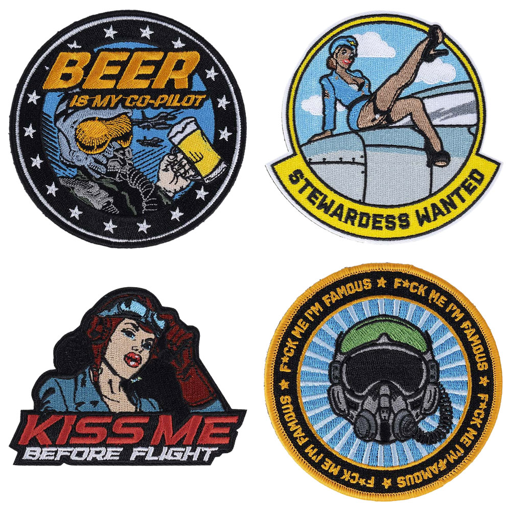 Das perfekte Emblem-Set (4-teilig) für deinen Flieger-Overall oder Flieger-Jacke im Top Gun, US Airforce Design. Fliegerkappen, Fliegerbrillen und Fliegermützen haben wir auch im Sortiment.