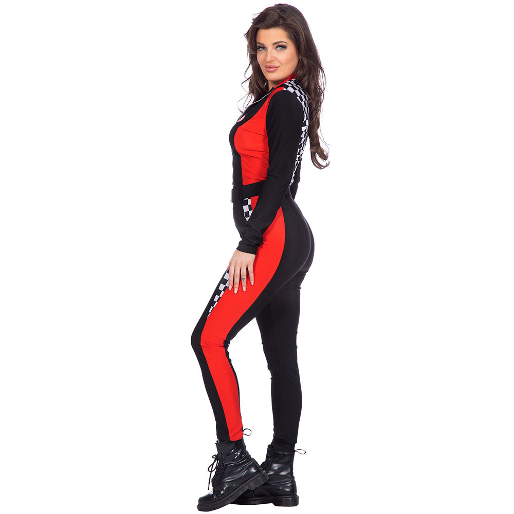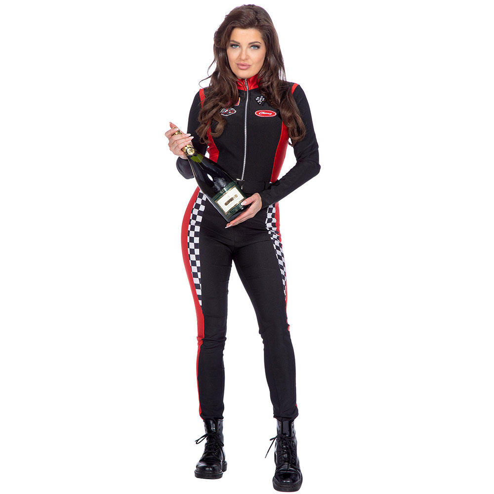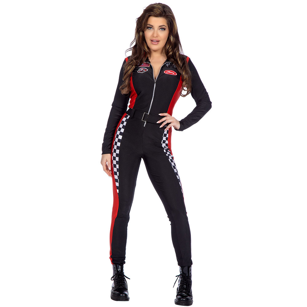 Schwarzer Damen-Rennoverall, perfekt für deine nächste Testfahrt auf der Rennstrecke.