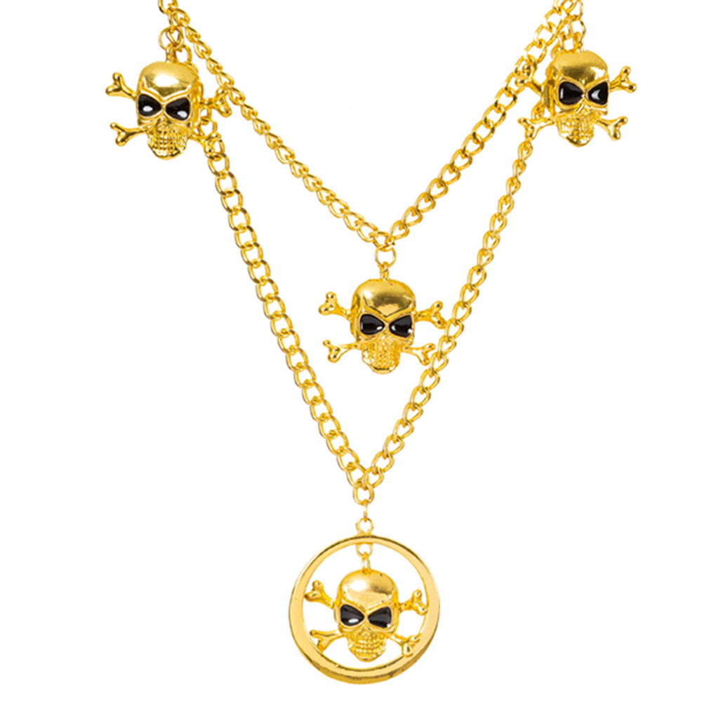 Weiterführende Links zu "Halskette mit Totenköpfe, Metall, gold"