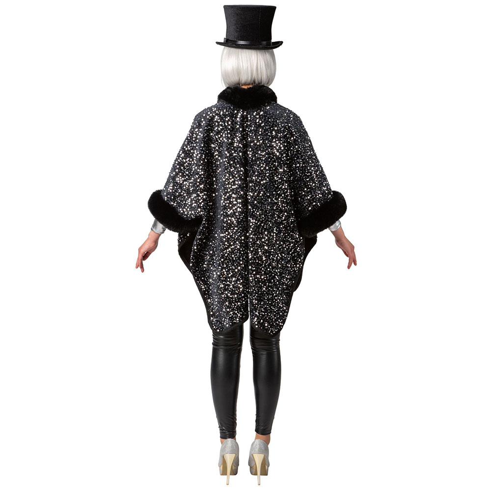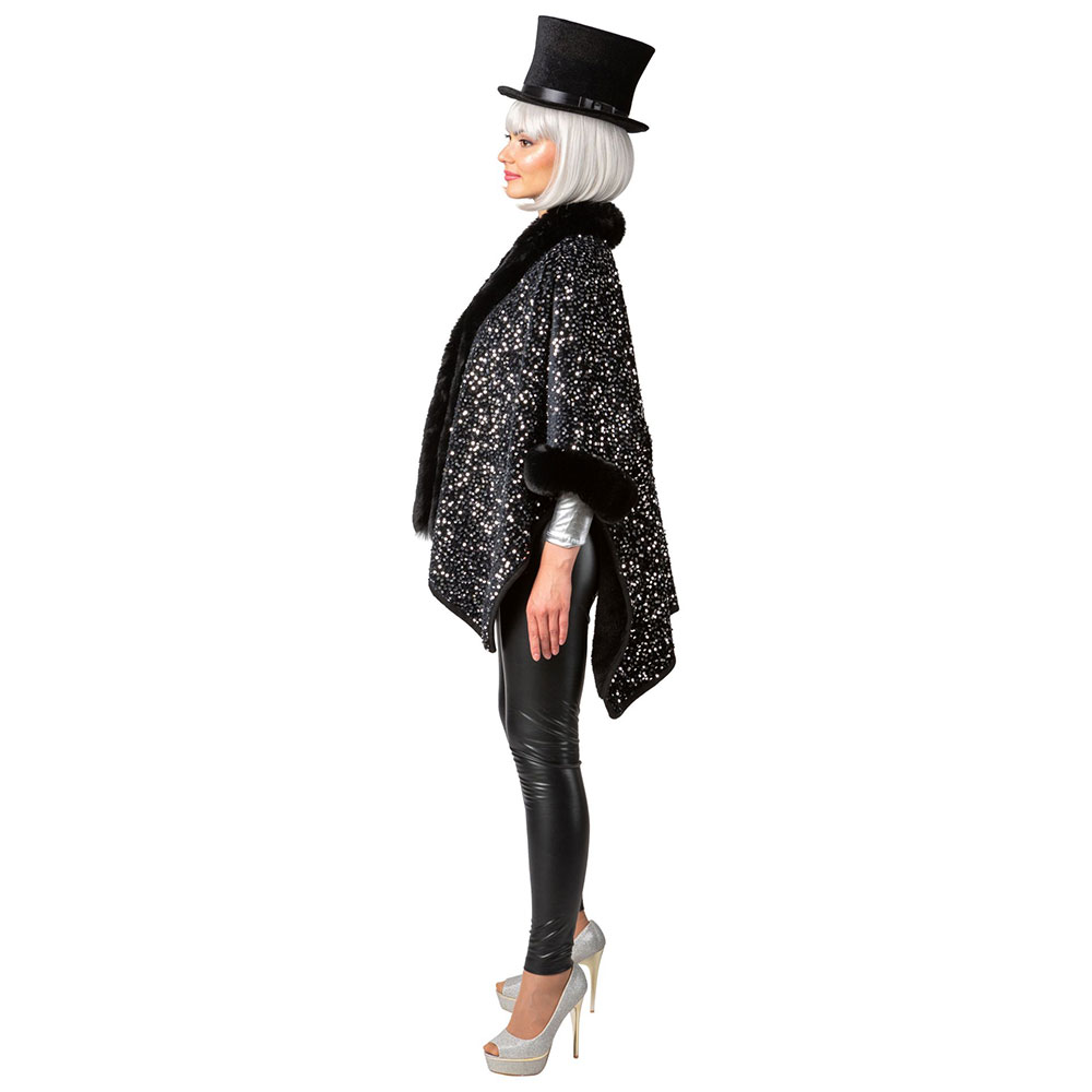 Damen Pailletten Poncho, schwarz/silber, Onesize