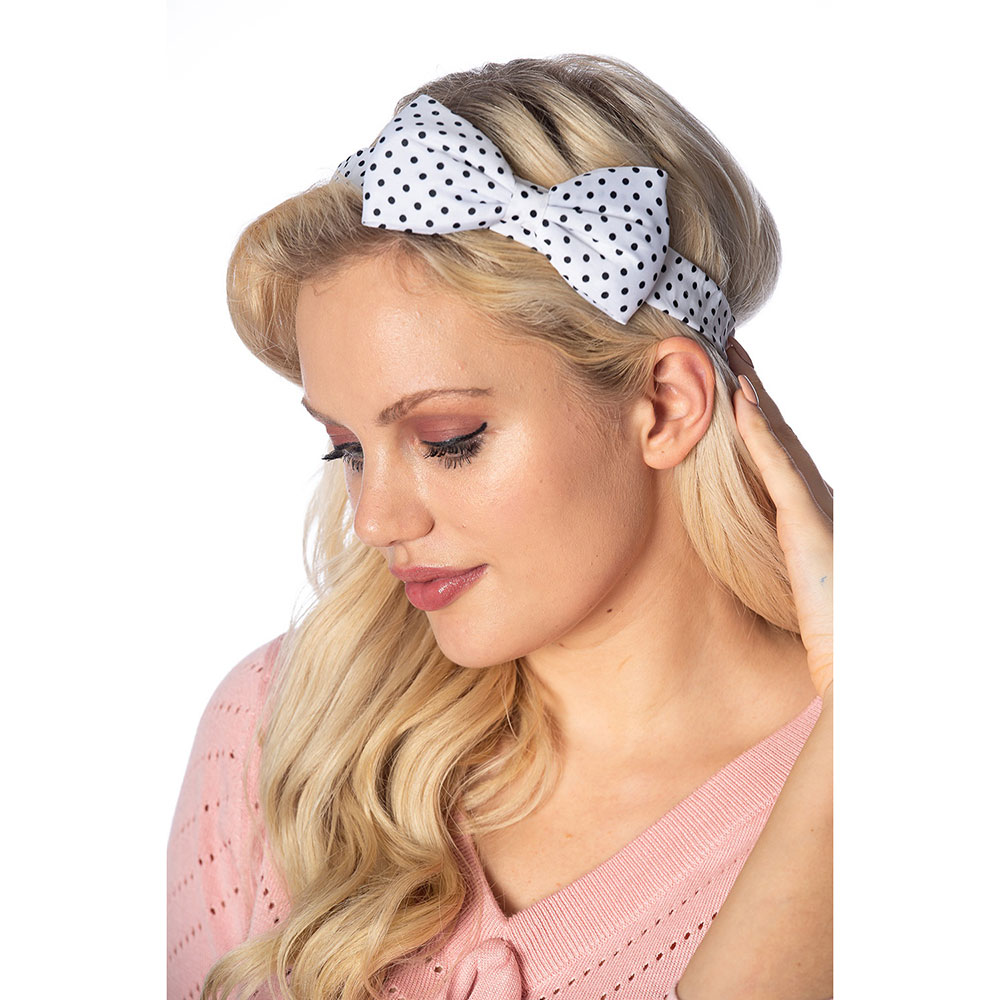 Haarband Dionne mit Schleife, weiss/schwarz gepunktet